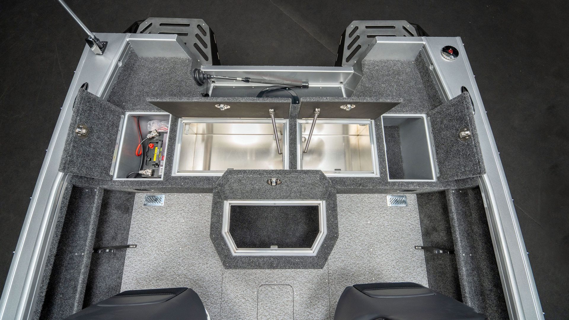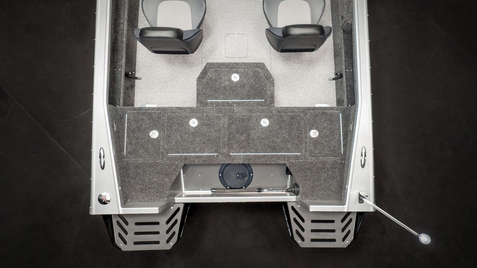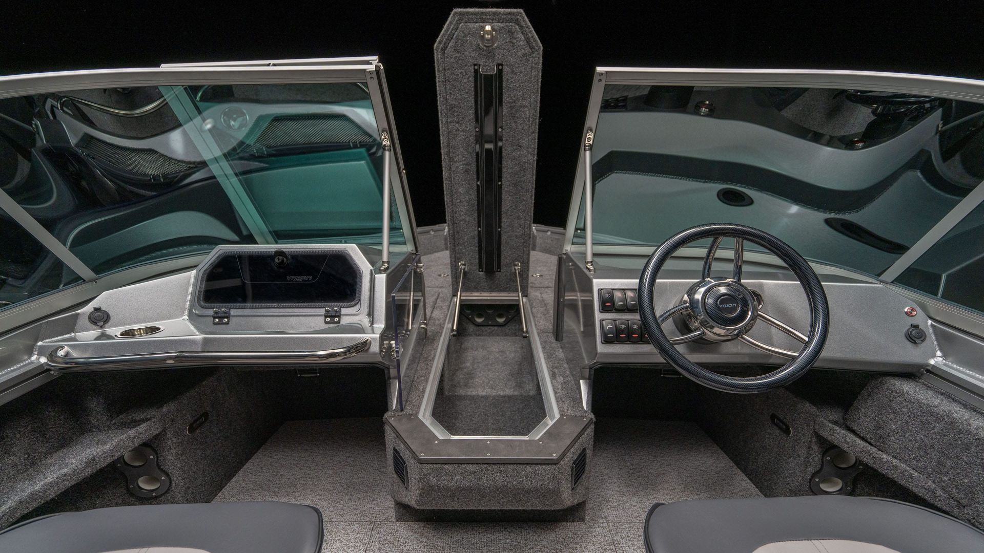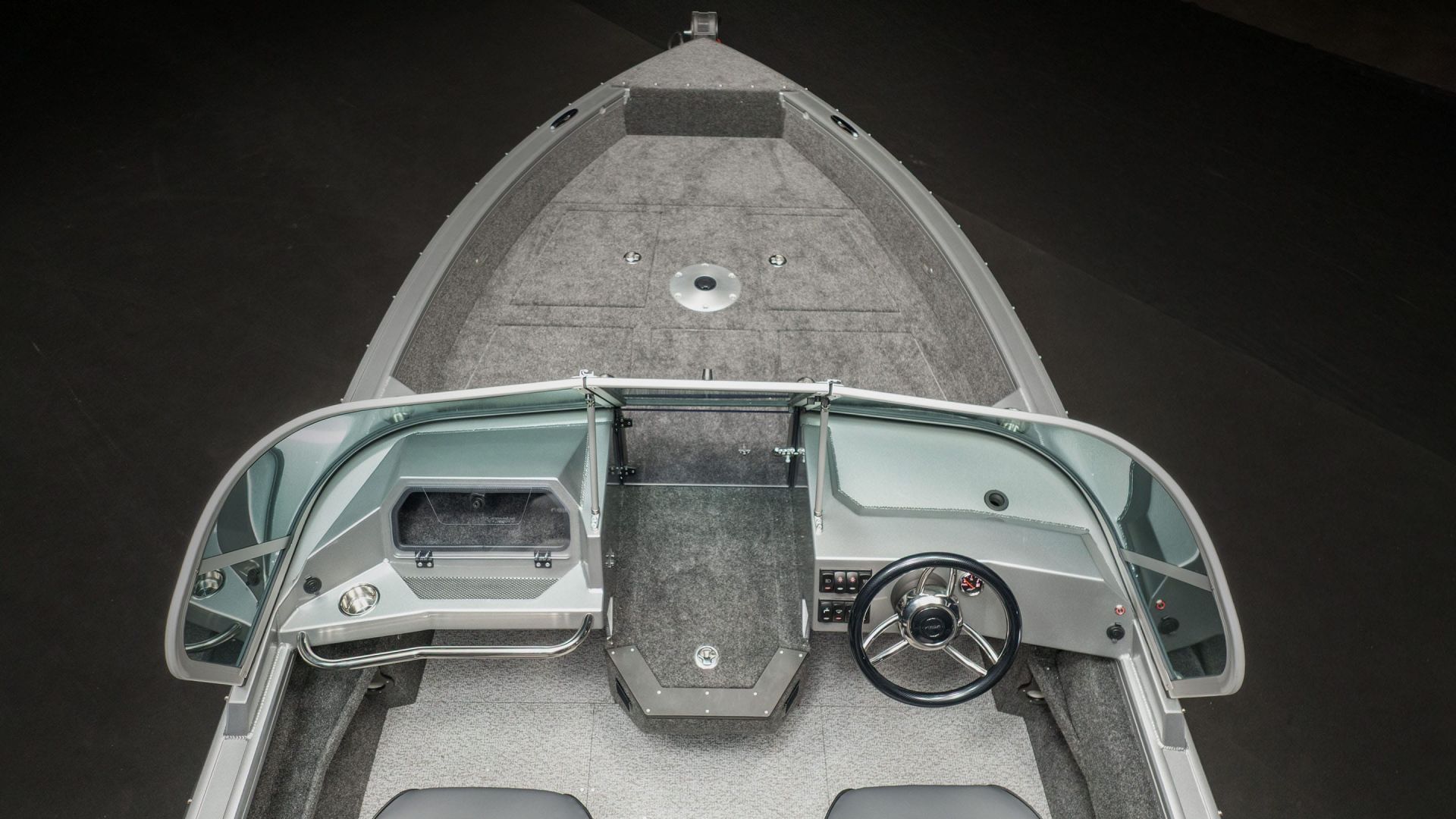 Die Konsole des Bootes wurde nach hinten versetzt, was ein größeres Vordeck ermöglicht. Das hintere und das vordere Deck sind jetzt nur noch durch eine Stufe getrennt. Sie können problemlos 9 Angelruten in Größe von 2,10 bis 2,70 m unterbringen. Das Navigieren in den Wellen ist jetzt noch komfortabler.