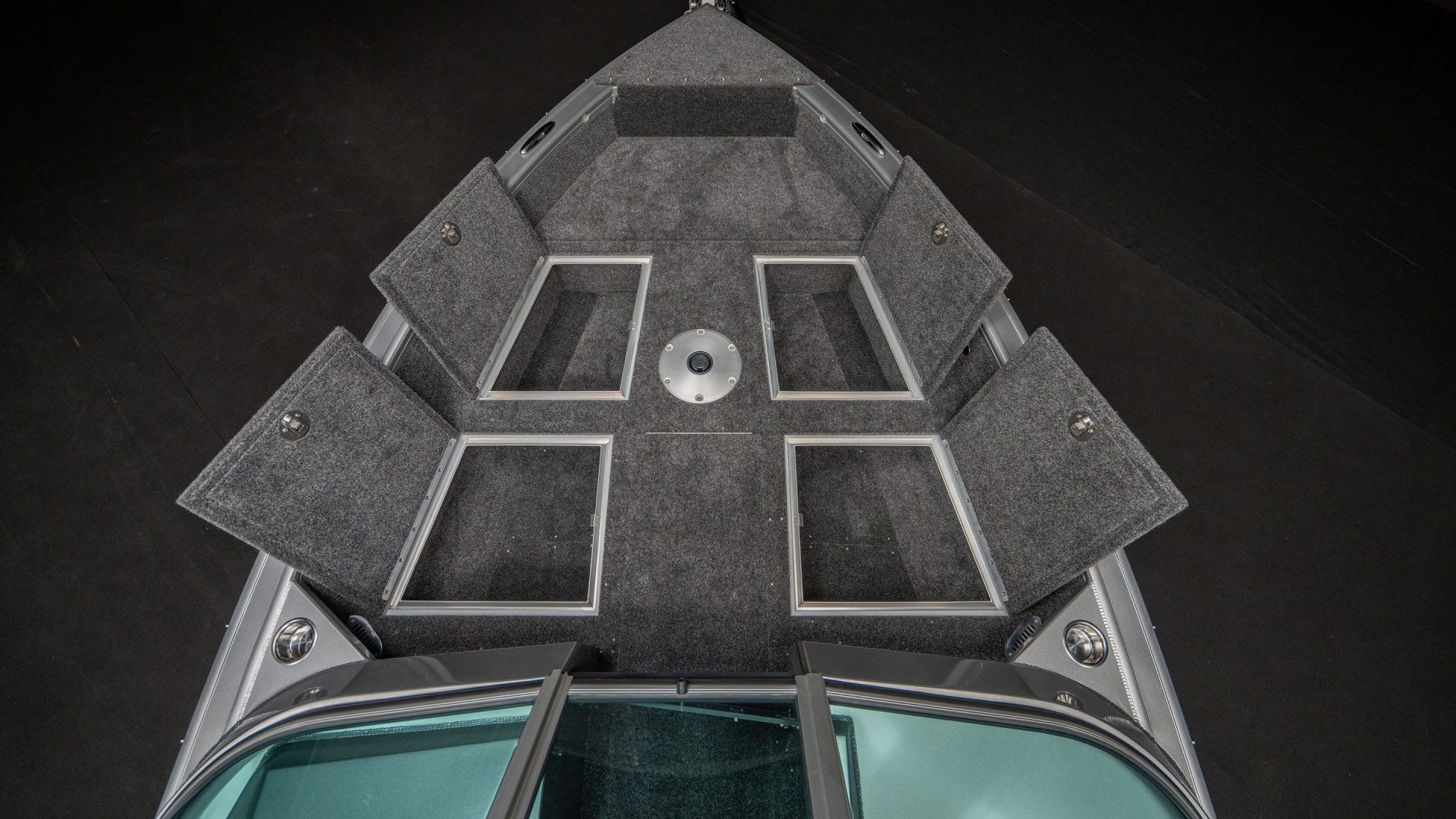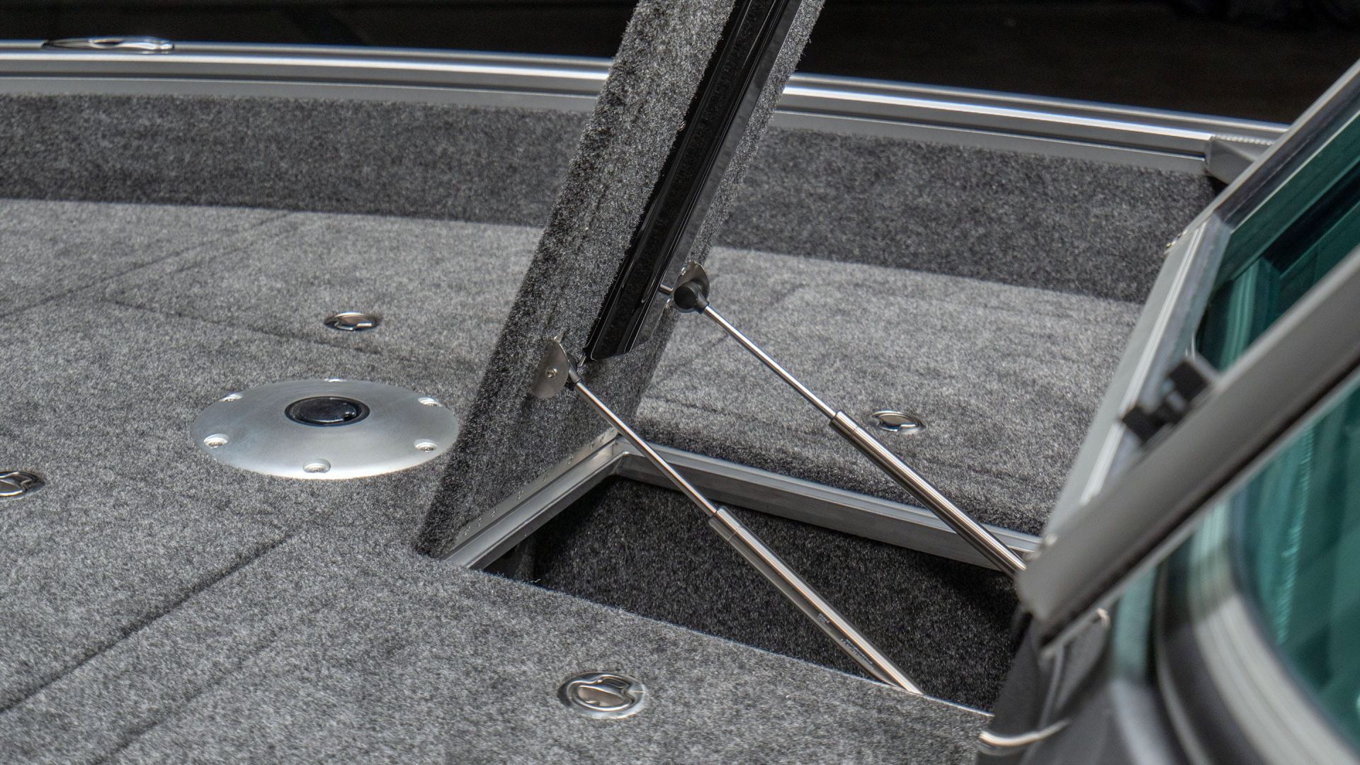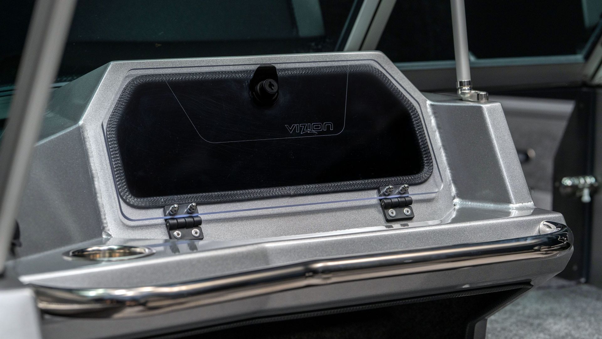 Alle Fächer im Boot VIZION 470 sind auch innen mit dem Marineteppich VENUS 437 SPACE ausgehüllt. Es ist ein spezielles Ablaufsystem in alle Fächer eingebaut, sodass Ihre persönlichen Sachen stets absolut trocken bleiben.
