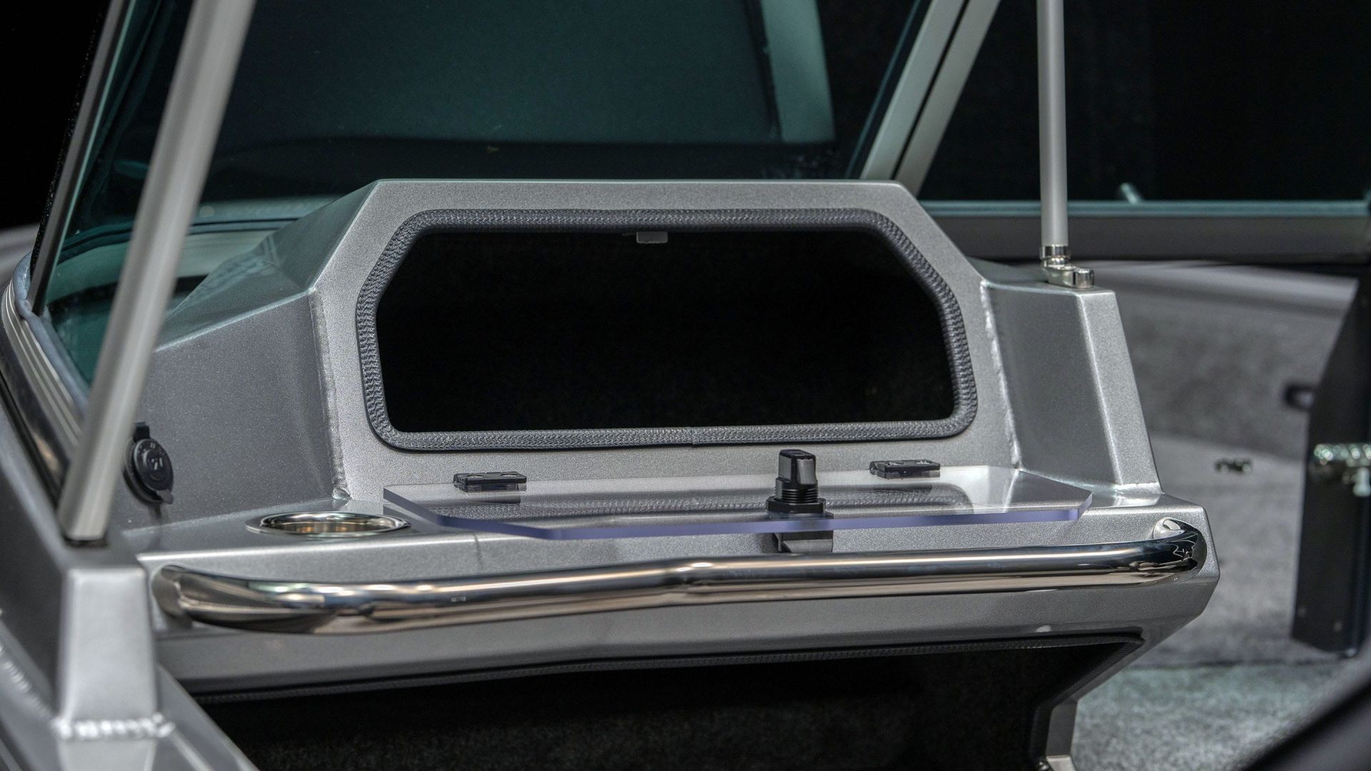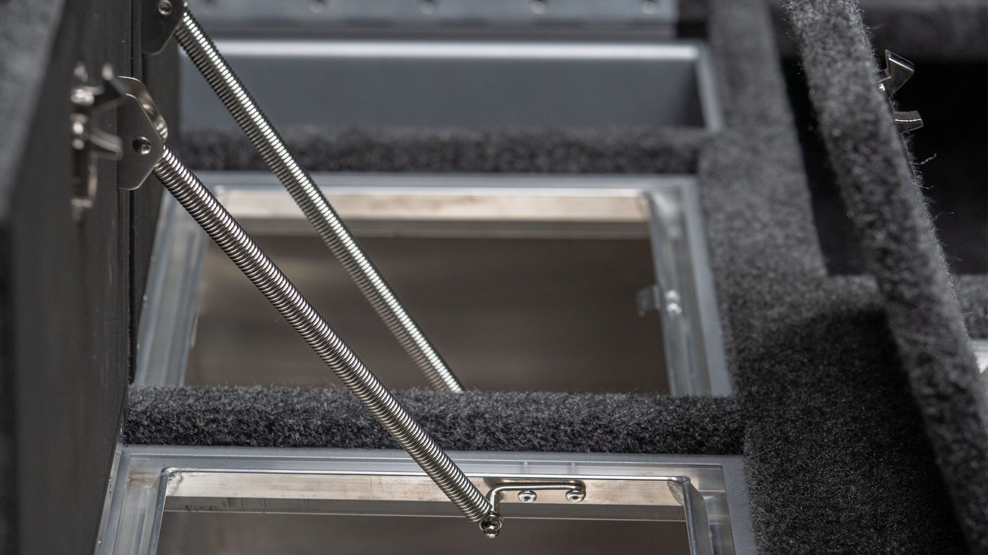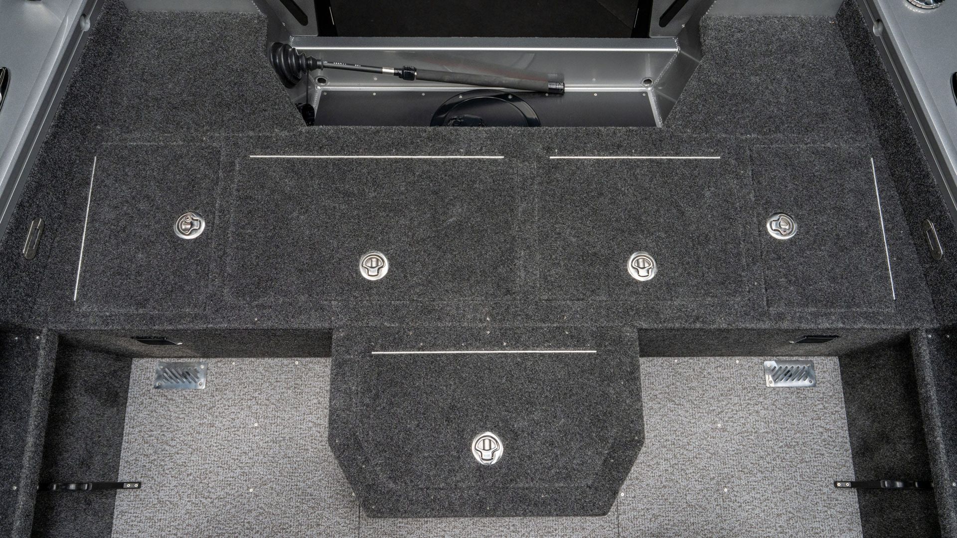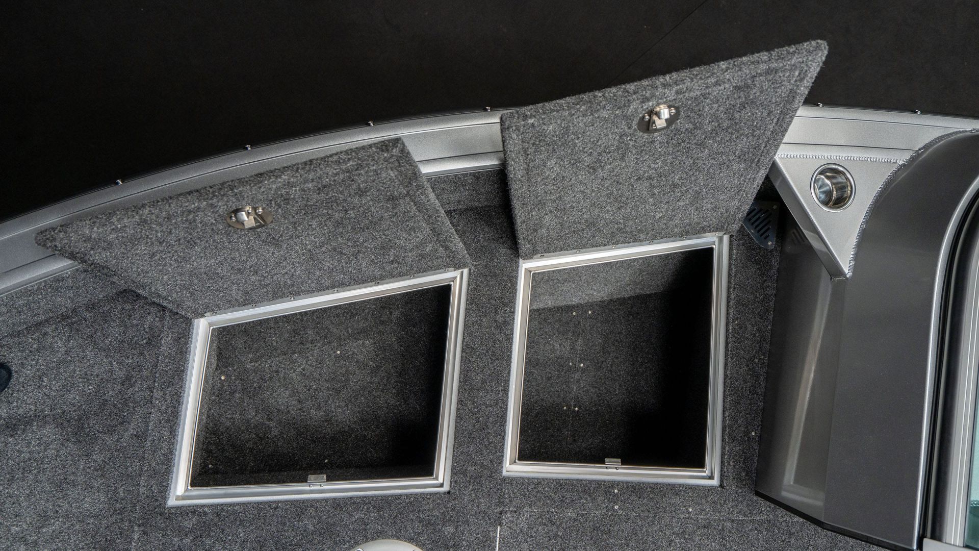 Alle Fächer im Boot VIZION 470 sind auch innen mit dem Marineteppich VENUS 437 SPACE ausgehüllt. Es ist ein spezielles Ablaufsystem in alle Fächer eingebaut, sodass Ihre persönlichen Sachen stets absolut trocken bleiben.